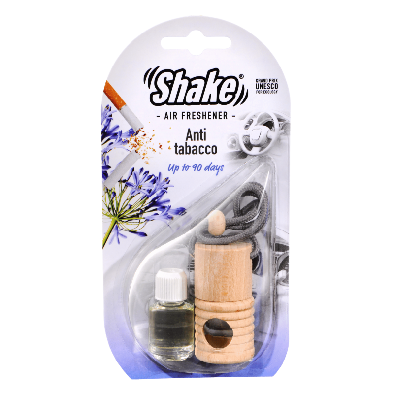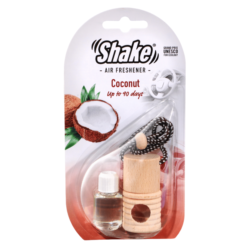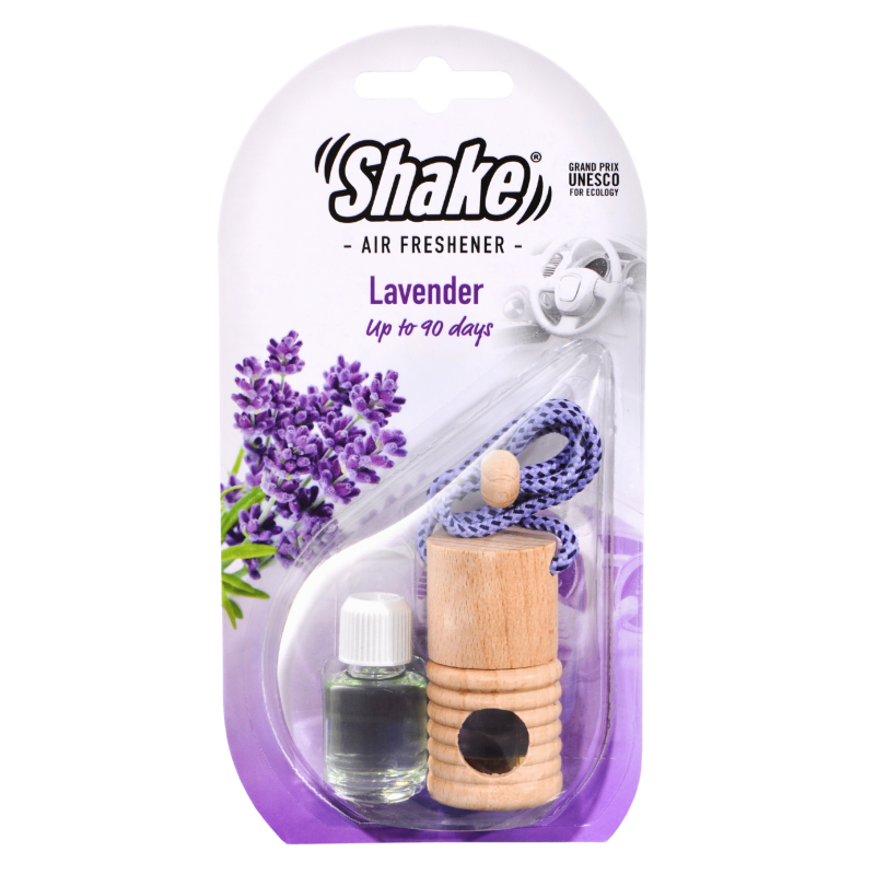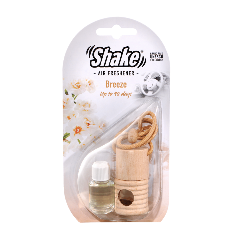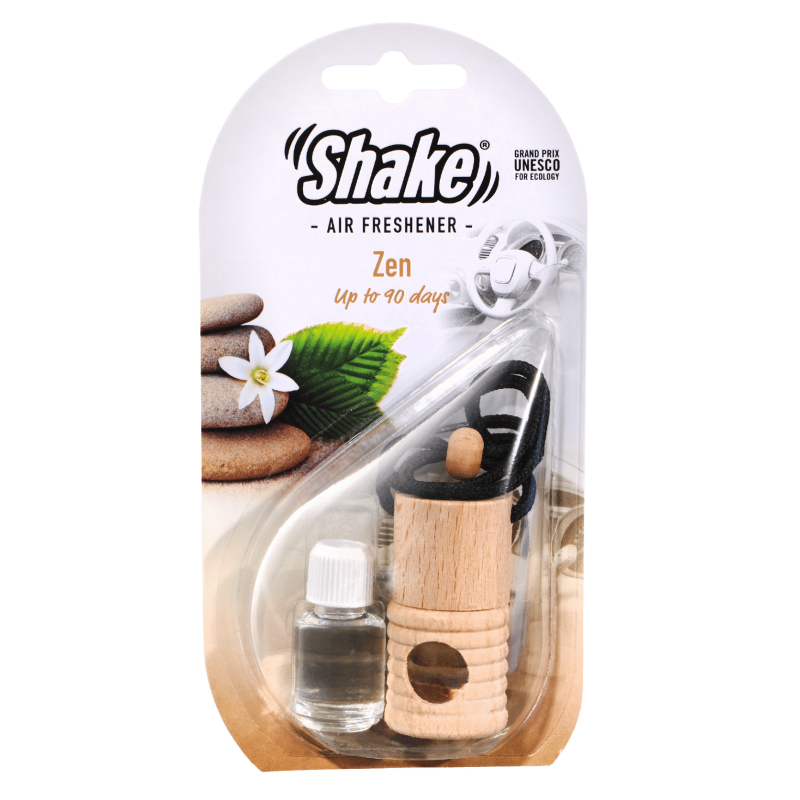 Malá fľaštička s esenciou a drevenou zátkou, ktorú môžete zavesiť na spätné zrkadlo pomocou šnúrky. Stačí odstrániť plastovú zátku, nasaadiť drevený vrchnák a zavesiť. Pre uvoľňovanie vône otočte fľaštičku na 2 sekundy každé 2–3 dni.