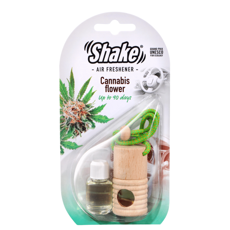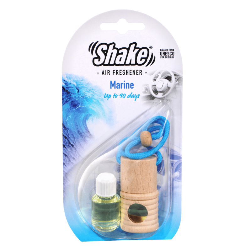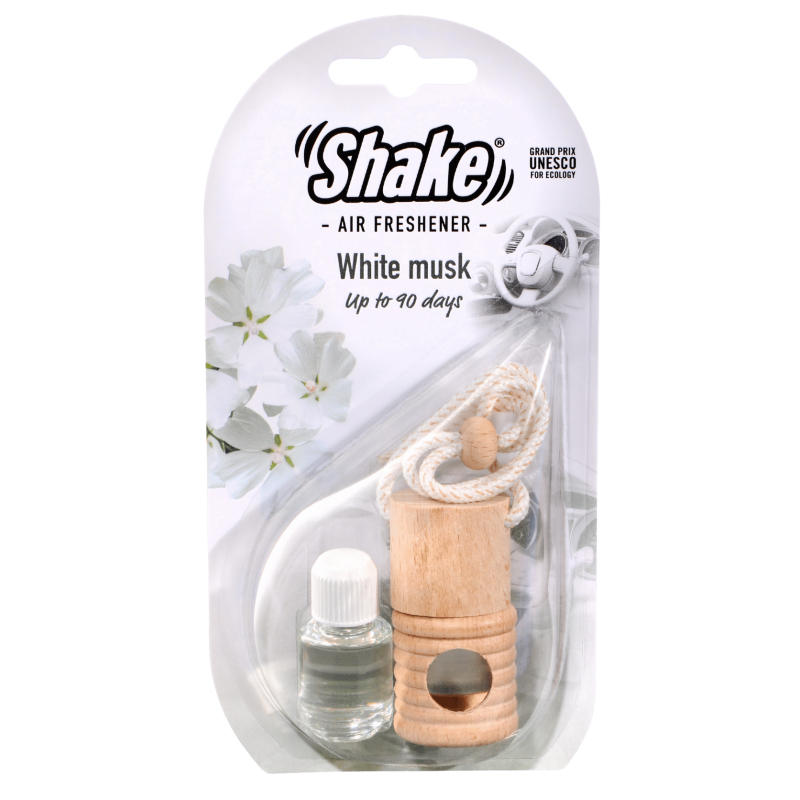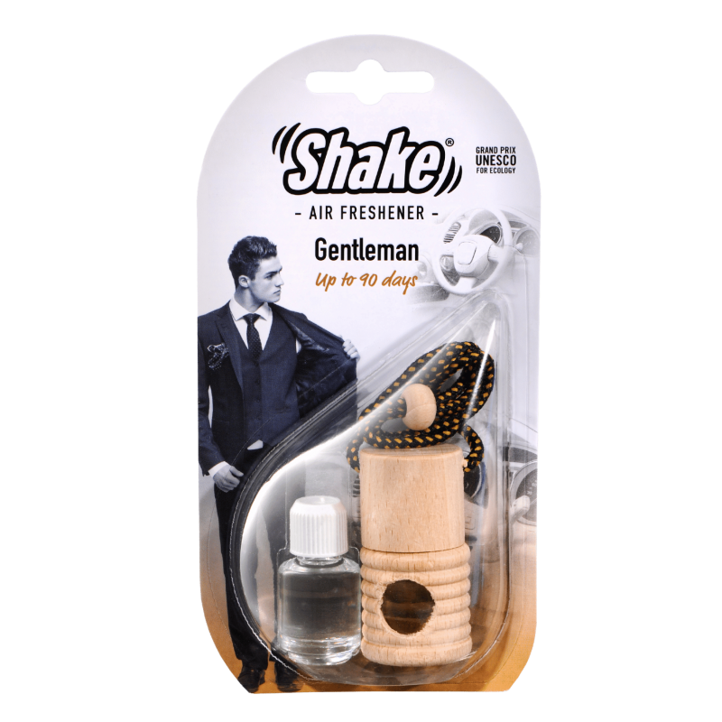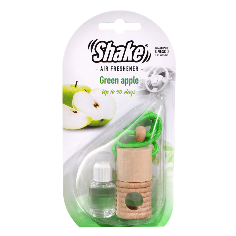 Malá fľaštička s esenciou a drevenou zátkou, ktorú môžete zavesiť na spätné zrkadlo pomocou šnúrky. Stačí odstrániť plastovú zátku, nasaadiť drevený vrchnák a zavesiť. Pre uvoľňovanie vône otočte fľaštičku na 2 sekundy každé 2–3 dni.